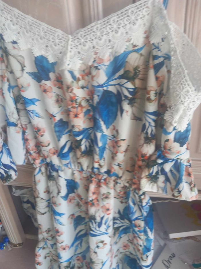 Combi short femme Marqué made in italy Matières 97% polyester et 3% elasthane Taille unique voir dimensions Couleurs beige, bleu, rose, marron et vert Motifs fleurs Légèrement transparent Dimensions approximative 85cm de long : largeur sous aisselles 45cm : largeur d'épaules 38cm : longueur de manches 20cm : largeur à la taille 40cm En très bon état