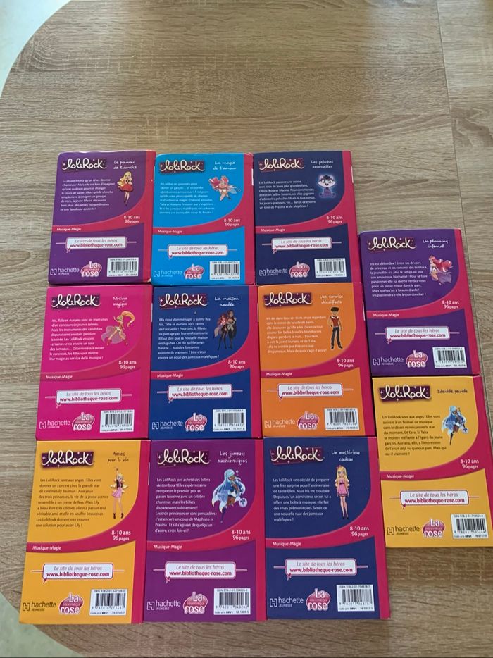 Tome 1 : le pouvoir de l’amitié Tome 2 : la magie de l’amour Tome 5 : les peluches ensorcelées Tome 6 : musique magique Tome 7 : la maison hantée Tome 8 : une surprise décoiffante Tome 16 : amies pour la vie Tome 17 : les jumeaux machiavéliques Tome 18 : un mystérieux cadeau Tome 23 : un planning infernal Tome 24 : identité secrète Certains ont la tranche et les coins abimés ( voir photo) Le tome 23 a la tranche des pages tachée ainsi que l’intérieur ( voir photo) Peut être vendu à l’unité, me demander. 18 € le lot ou 2 € pièce Envoi rapide et soigné sous protection