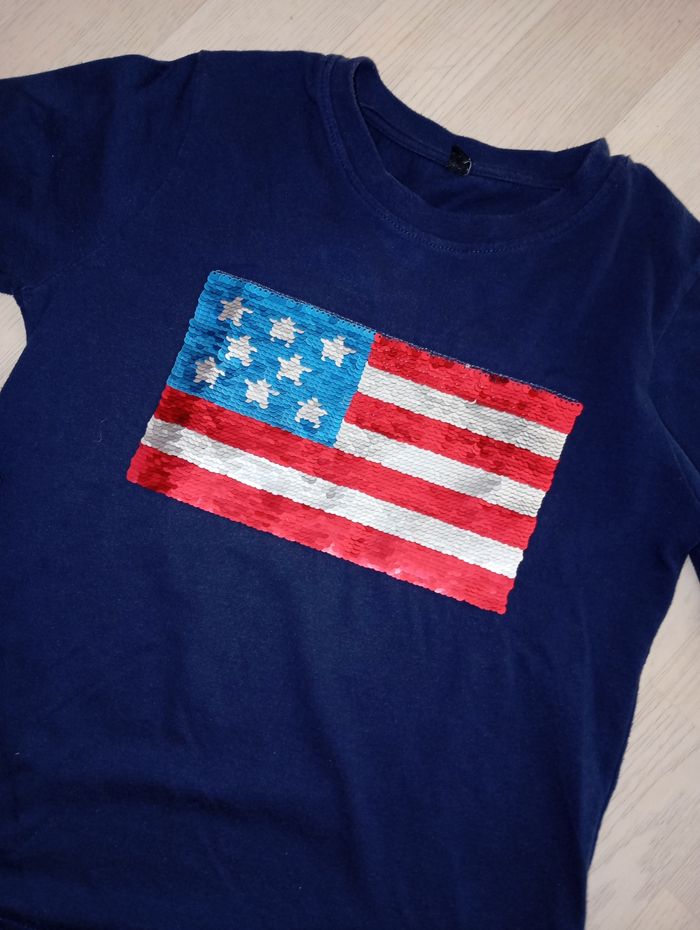 Tee-shirt bleu marine à sequins drapeau américain Marque : Boutique Plus T. 10 ans Très bon état général