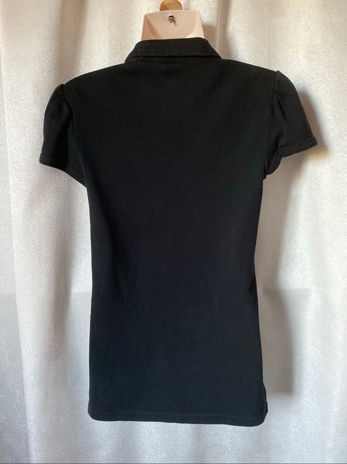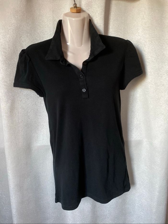 T-shirt polo noir Manches courtes froncées 100% coton Taille 18 ans Petit Bateau Carrure 37 cm Aisselle 39,5 cm Longueur 65,5 cm Bon état car le noir est un peu passé