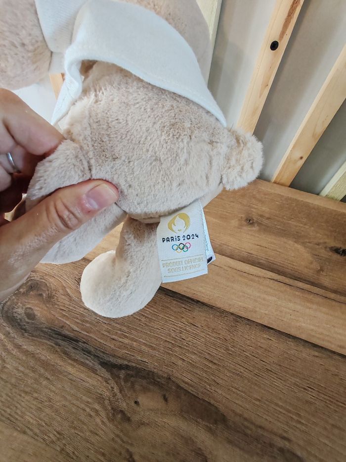 Ours beige avec tee-shirt Paris 2024 Excellent état etat Marque doudou et compagnie 15 euros Envoi en relais