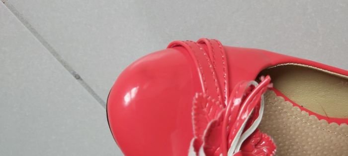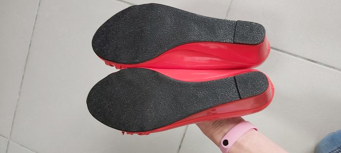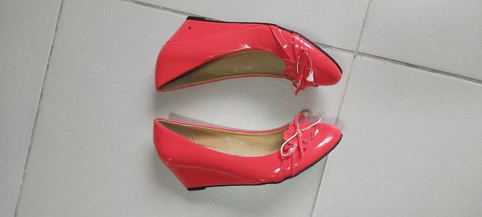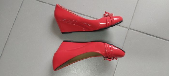 .Chaussure avec talon compensé Trait noir du au stockage voir photo Sur une Chaussure : 2 petit trait noir sur le devant et un point noir sur semelle Sur la 2eme Chaussure : point noir arrière et trait sur semelle Pointure 39 #carineddichaussures