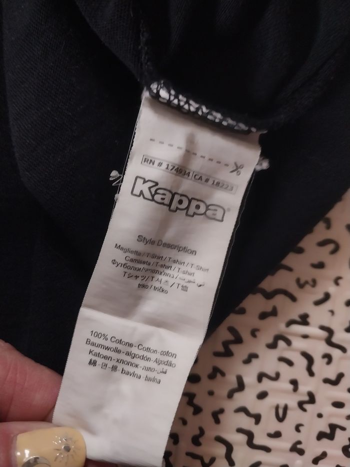 T-shirt noir Kappa à logo iconique sur le devant, avec détails graphiques rouges et blancs. Coupe classique, col rond, 100 % coton – confortable et agréable à porter. 🔹 Taille : 8 ans / 128 cm 🔹 Couleur : noir 🔹 Matière : 100 % coton 🔹 État : bon état, porté quelques fois Idéal pour un look sport et tendance au quotidien ! #Kappa #Garçon #TshirtKappa #ModeEnfant #Streetwear