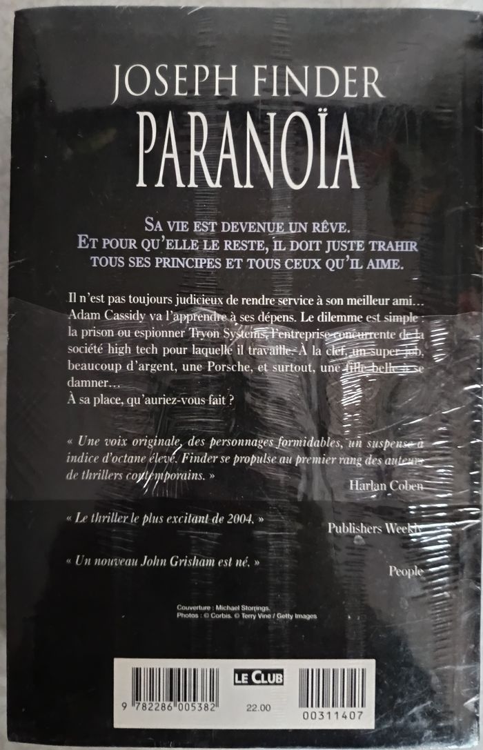 Joseph Finder : Paranoïa " Thriller " Roman Neuf Scellé - photo numéro 2
