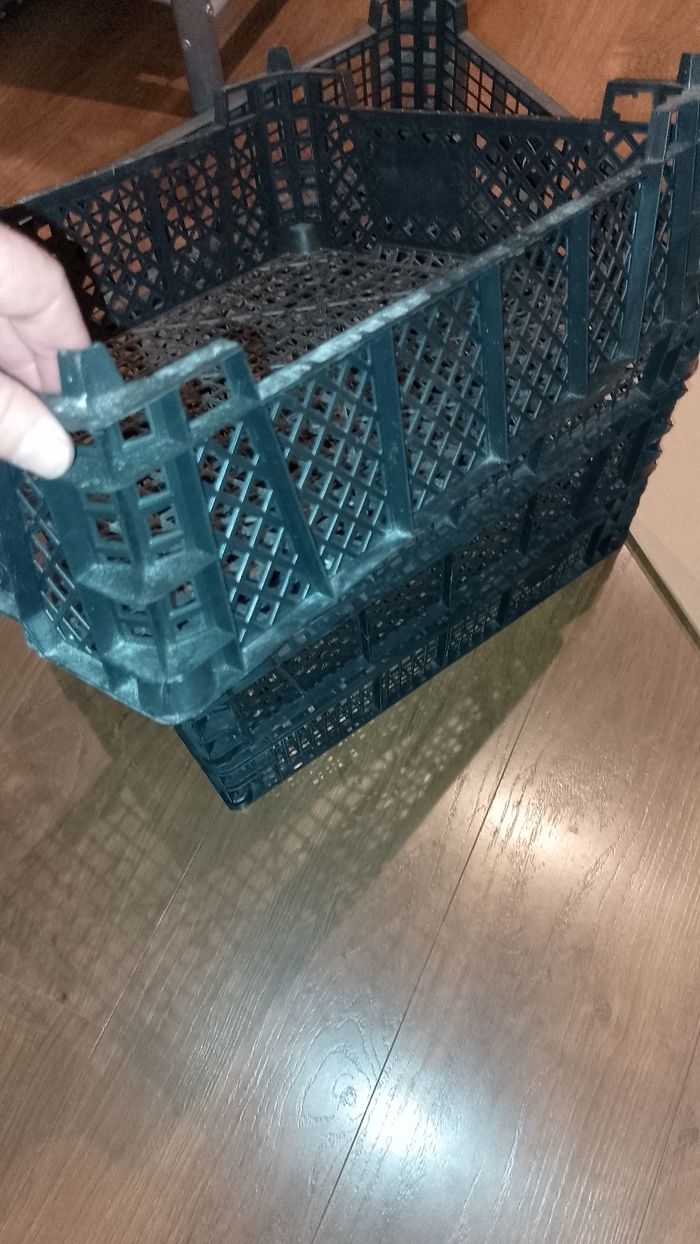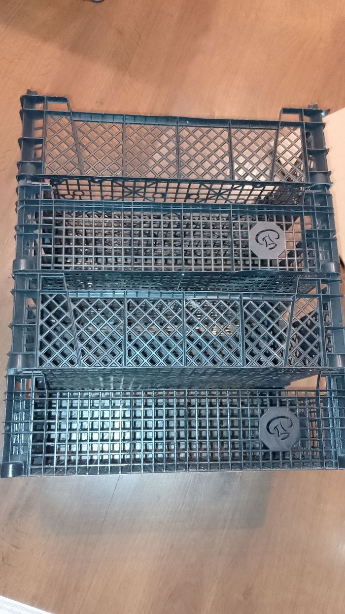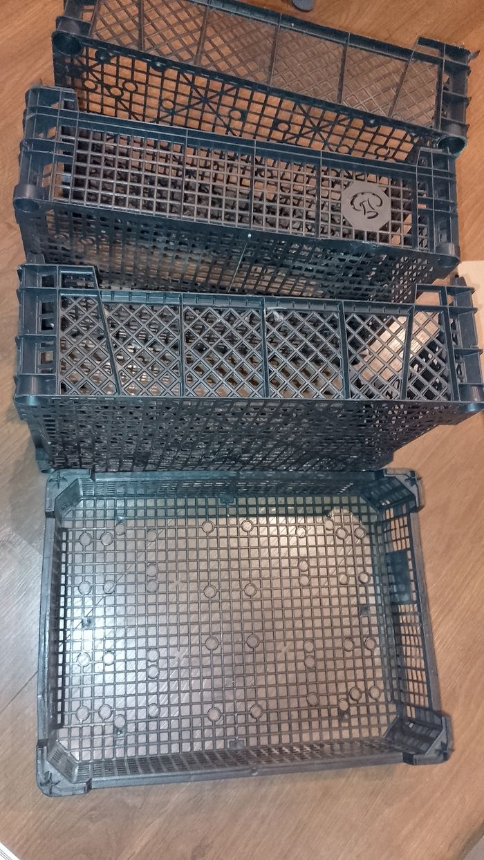 Caisse plastique pour rangement 3€ pièce pour fruits et légumes, jouets Classer des papiers. 30x40 H.min 9 à maxi 12cm Dispo 1 rouge et des noirs