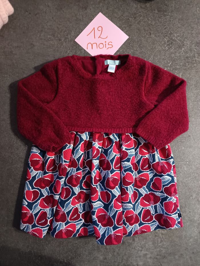 Robe bi matière bordeau 12 mois - photo numéro 1