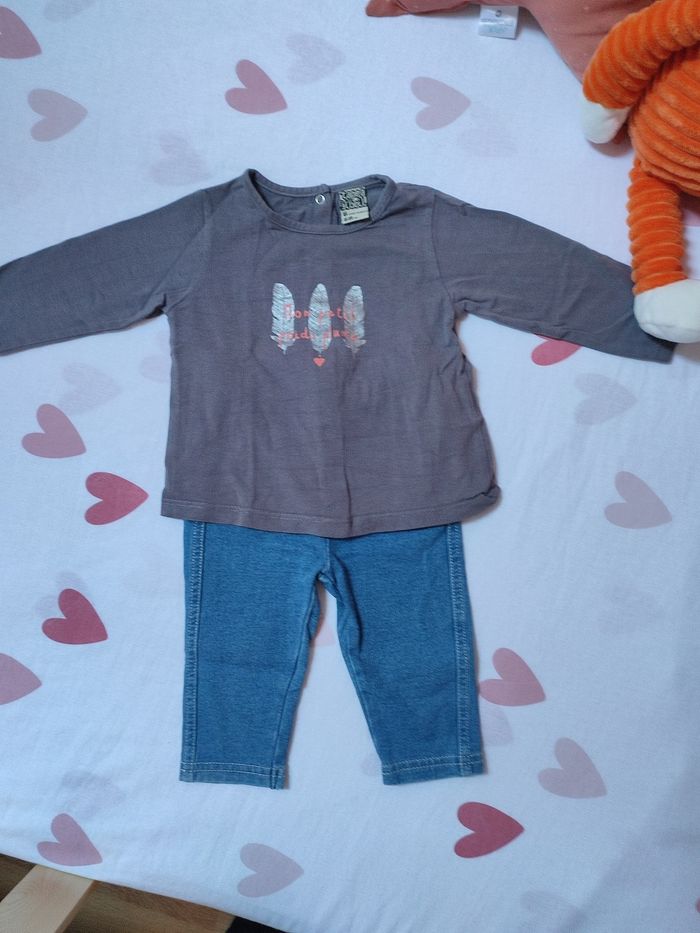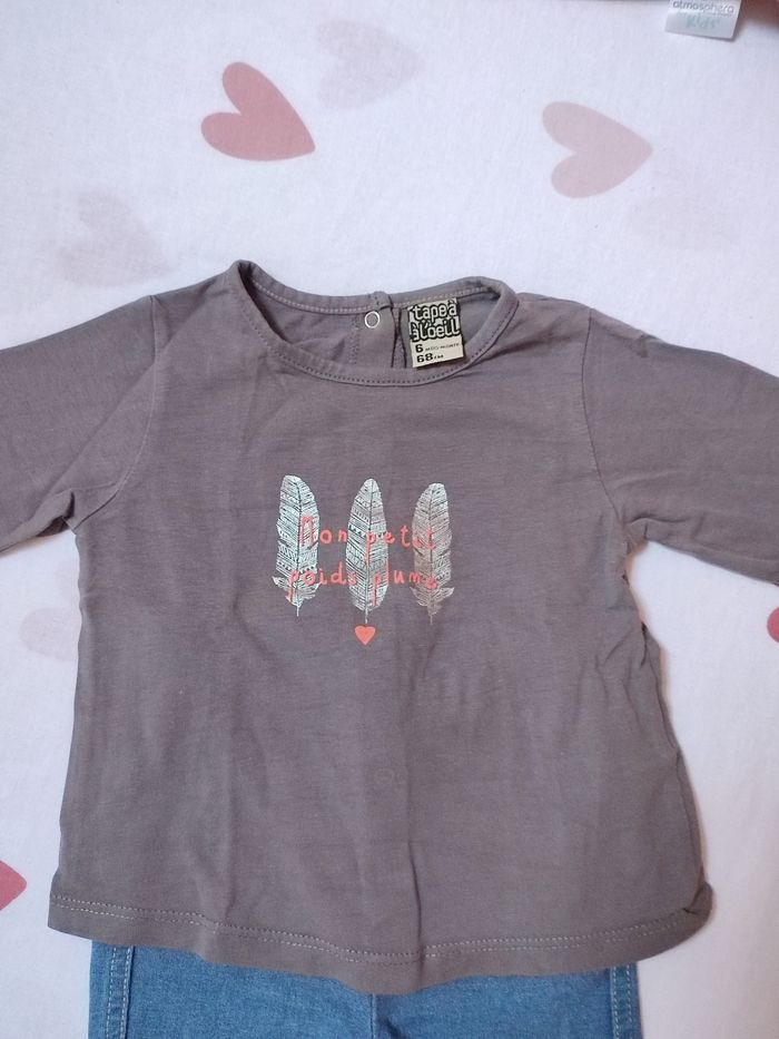 🌸 Adorable ensemble de la marque Tape à l'oeil. 🌸 L'ensemble se compose de : • un tee-shirt manches longues Tape à l'oeil avec inscription "Mon petit poids plume" ; 🪶 • un jean bleu, resserrer à la taille. 🌸 Très bon état. 🌸 Taille 6 mois. 🌸 N'hésitez pas à aller faire un tour sur mon dressing, plein d'articles bébé/enfants. 🌸