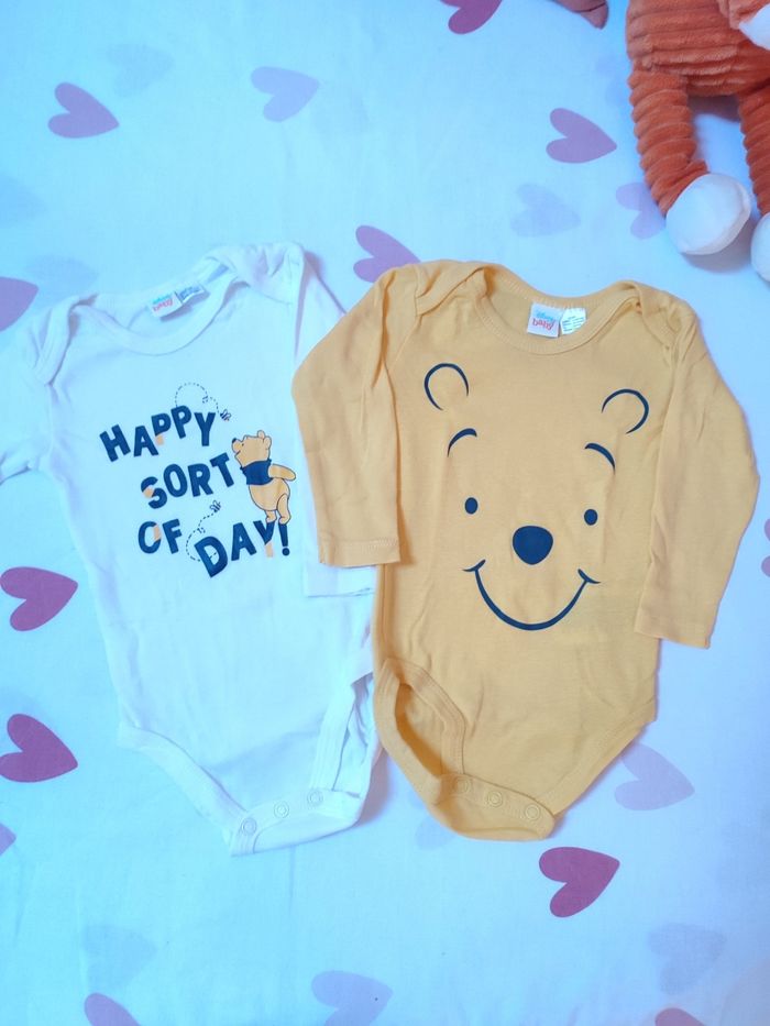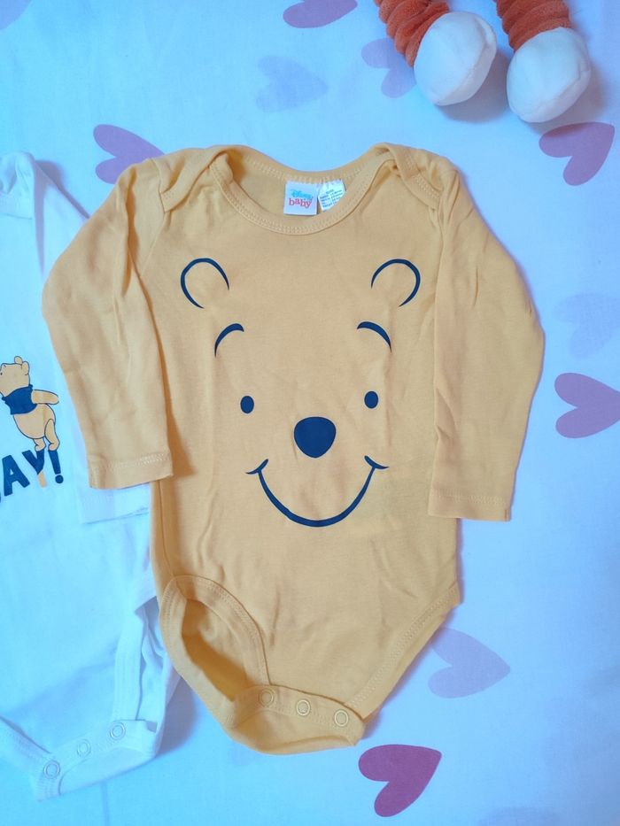 • 1 bodie manches longues jaune avec motif tête de Winnie l'ourson.
