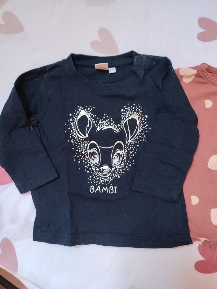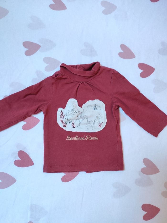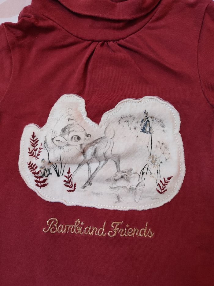 • un tee-shirt bordeaux avec motif Bambi et Panpan et inscritpion "Bambi and Friends" brodée.