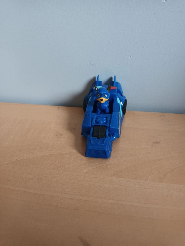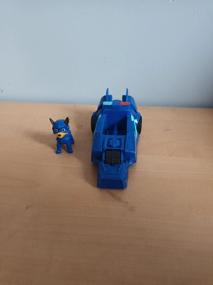 Voiture Paw patrol Chase et son véhicule Très bon état Vendu avec sa boîte ( boîte abîmé)