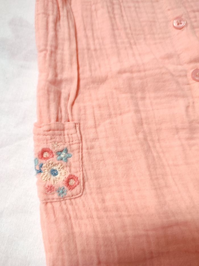 🌸 Adorable combinaison de la marque Mots d'enfants. 🌸 Taille 9 mois. 🌸 Couleur pêche/corail. Avec manches à volants et broderies fleuries sur la poitrine et les poches. 🌸 Pratique et confortable. Boutons pression sur le devant et à l'entrejambe pour faciliter l'habillage. 🌸 Très bon état. Peu porté. 🌸 Idéale pour le printemps/été. Confortable et légère. 🌸 N'hésitez pas à aller faire un tour sur mon dressing, plein d'articles bébé/enfants. 🌸