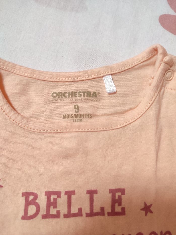 Tee-shirt manches courtes bébé fille - 9 mois - Très bon état - Orchestra - photo numéro 1