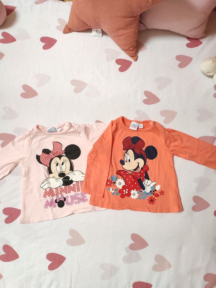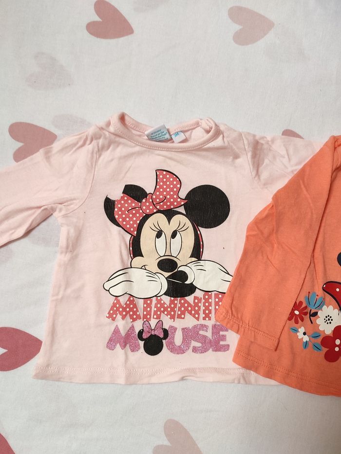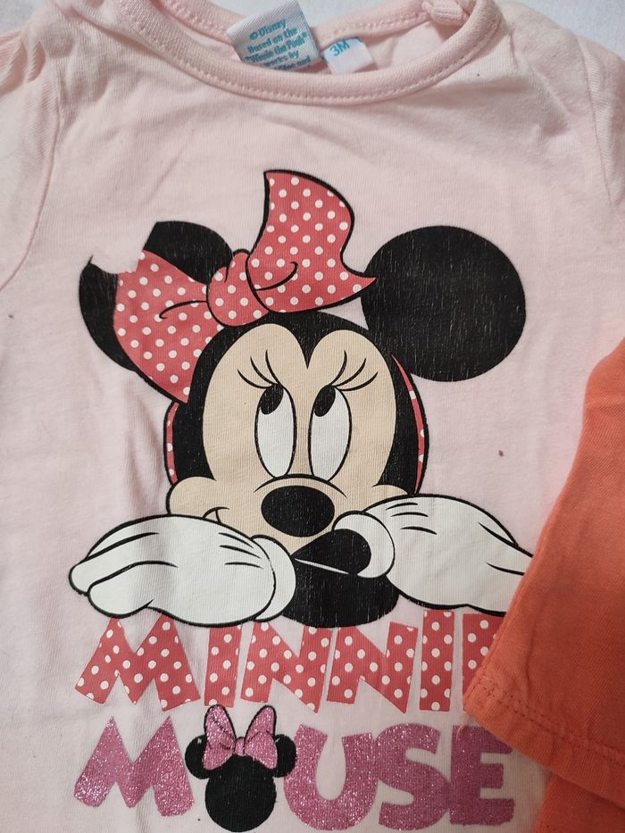 • un tee-shirt bleu rose pâle avec Minnie et inscription "Minnie mouse" ;