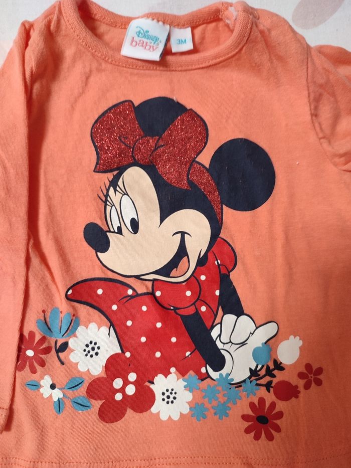 • un tee-shirt corail avec Minnie et des fleurs. 🌺