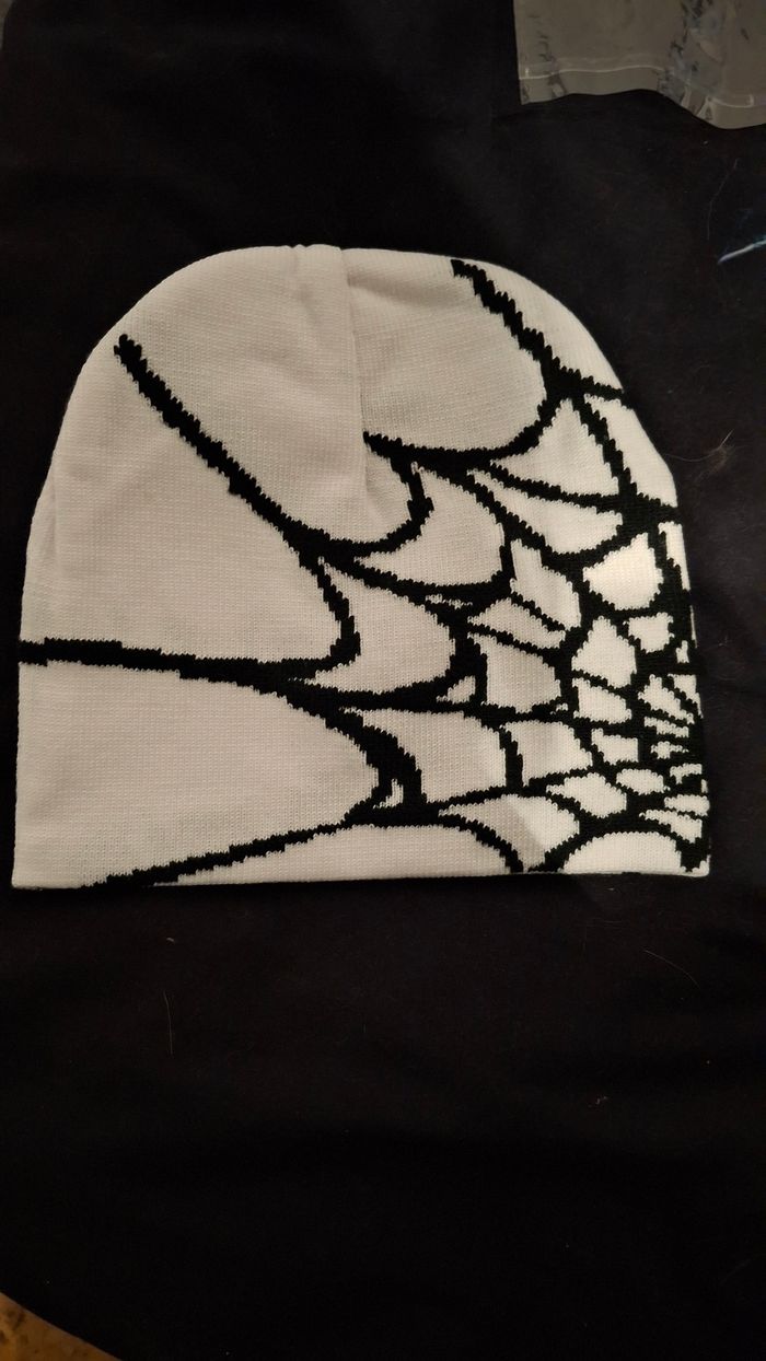 Bonnet Spider blanc avec motif noir Taille unique Neuf