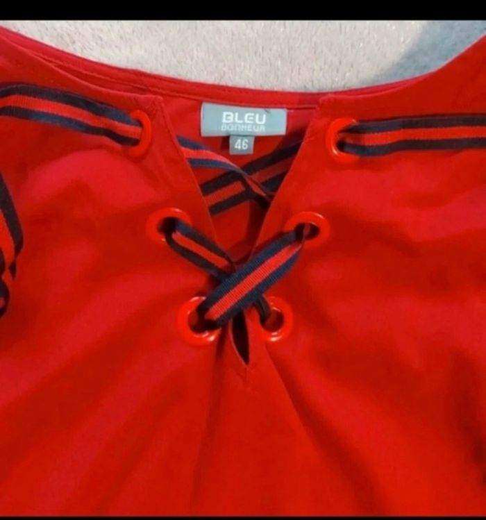 BLOUSE FEMME TAILLE 46 (XXXL) BORDEAUX BLEU BONHEUR TRÈS BON ÉTAT 1.19 EUROS