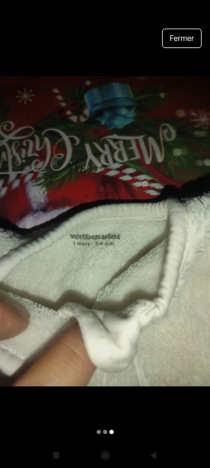 Très beau pyjama bébé Porter une seule fois Vertbaudet Un mois Noël E17