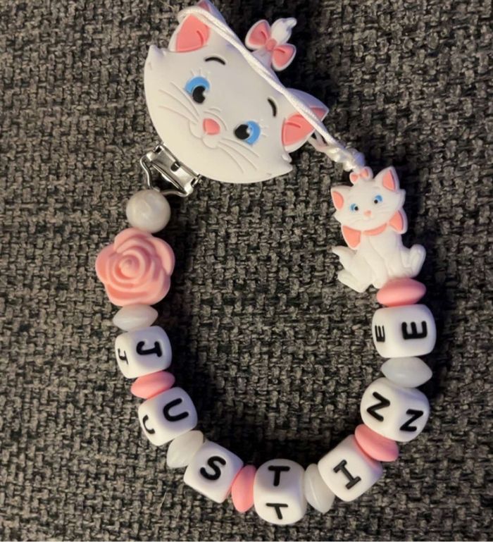 Pour passer la commande il suffit de valider le paiement sur l'annonce du modele désiré et de m'envoyez le prénom de l'enfant par message que je puisse réaliser votre commande. A partir de 2 articles vous bénéficiez de 5% de réduction. Réalisation dans la journée l'adaptateur tétine mam et en supplément à 1€ Si vous souhaitez quelque chose en particulier n’hésitez pas à m’envoyer un message qu’on voit ça ensemble 🥰 Une fois peut être envoyé avant l’envoi bien sûr ☺️