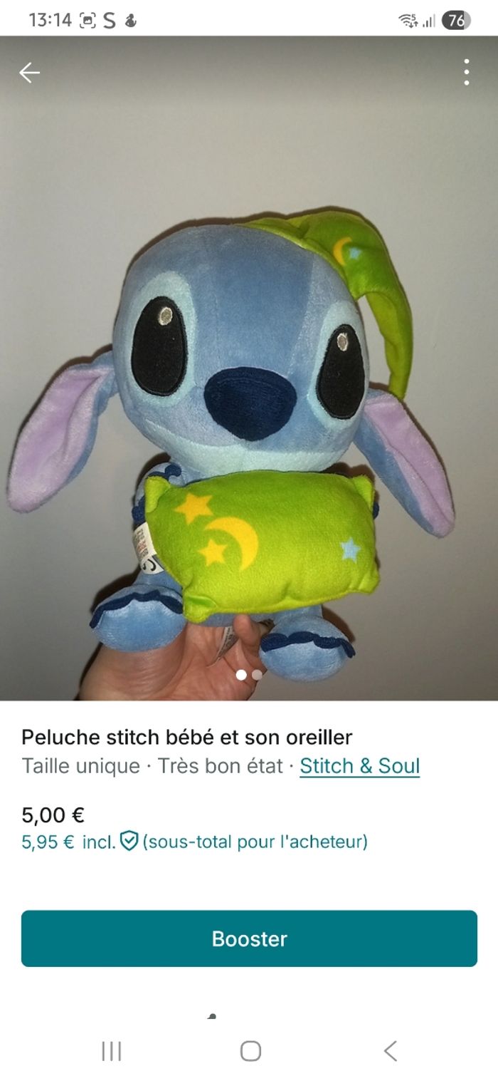 Peluche stitch bebe et son oreiller