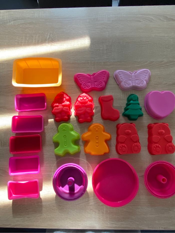 Lot de 20 mini moules à gâteau en silicone pour enfants, sapin, botte de Noël, père Noël, papillon, cake, mini cake, fantôme, bonhomme de neige, ourson, 1 petit moule présente un défaut visible sur une photo, pâtisseries, gâteau, Noël