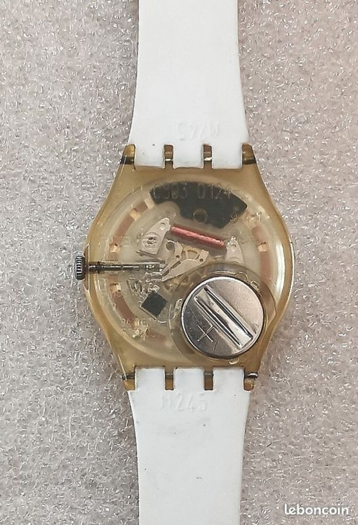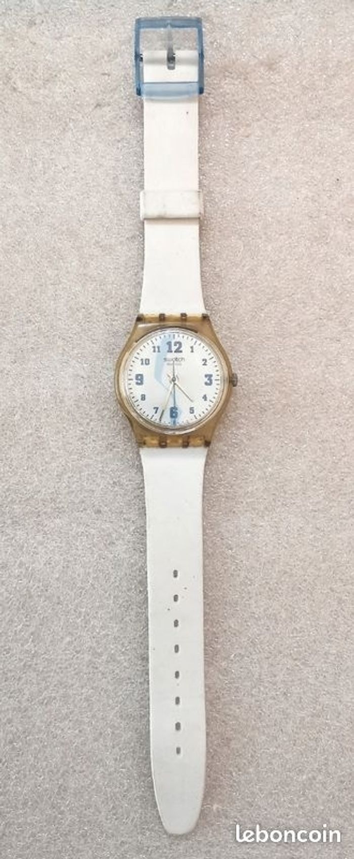 Montre SWATCH Collecteur "Fresh Breeze", SKK 130, Collection Access Snowpass 2008, boîtier de 34 mm, à intérieur blanc à détail bleu, chiffres bleus, aiguilles argent et trotteuse bleu, bracelet en résine blanc assorti, bqui ne pas d'origine, en parfait état de fonctionnement, pile fourni, prix définitif.