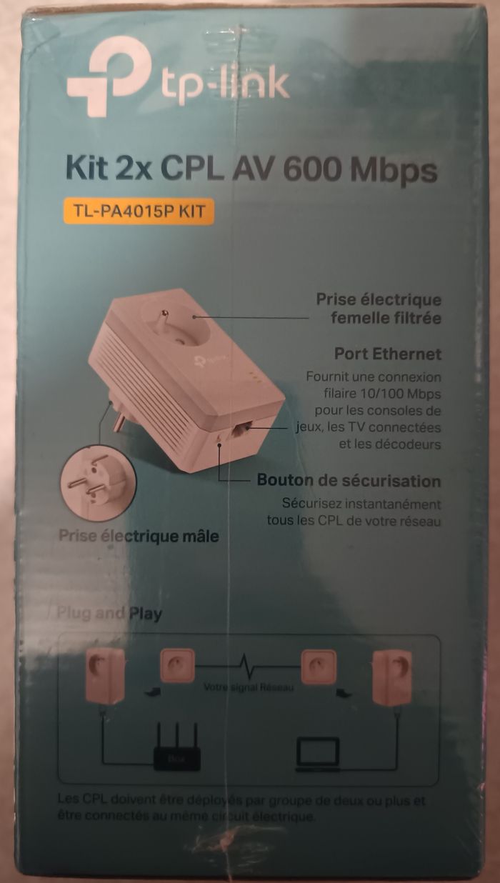 Kit de 2 CPL AV 600 Mbps avec prise intégrée Neuf Scellé - photo numéro 1