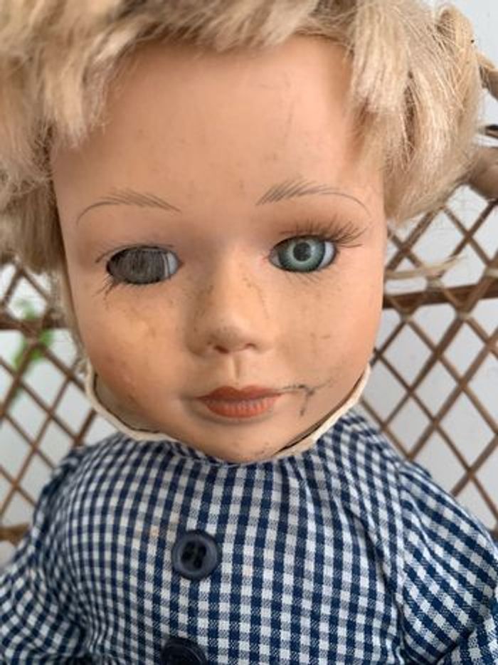 Poupée très ancienne sur fauteuil en osier - photo numéro 2