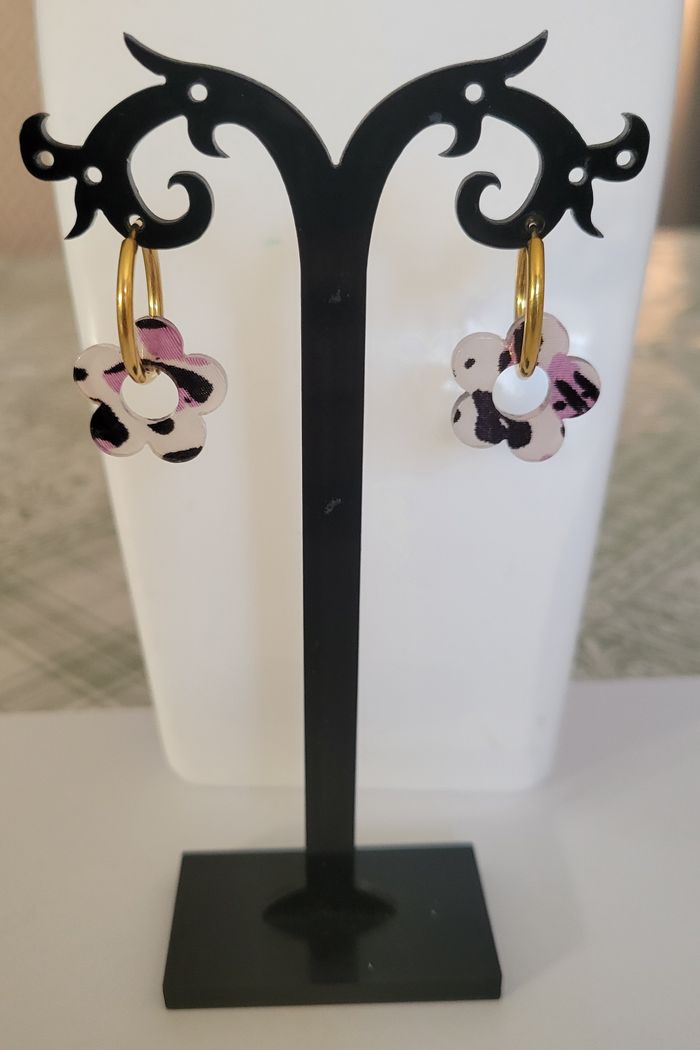 BOUCLES D'OREILLES ANNEAUX PAMPILLES FLEURS ! NEUF ! ( modele Lena)