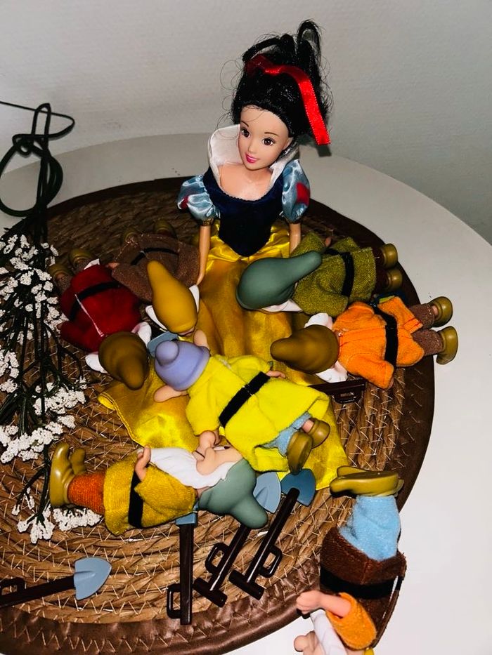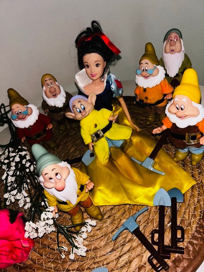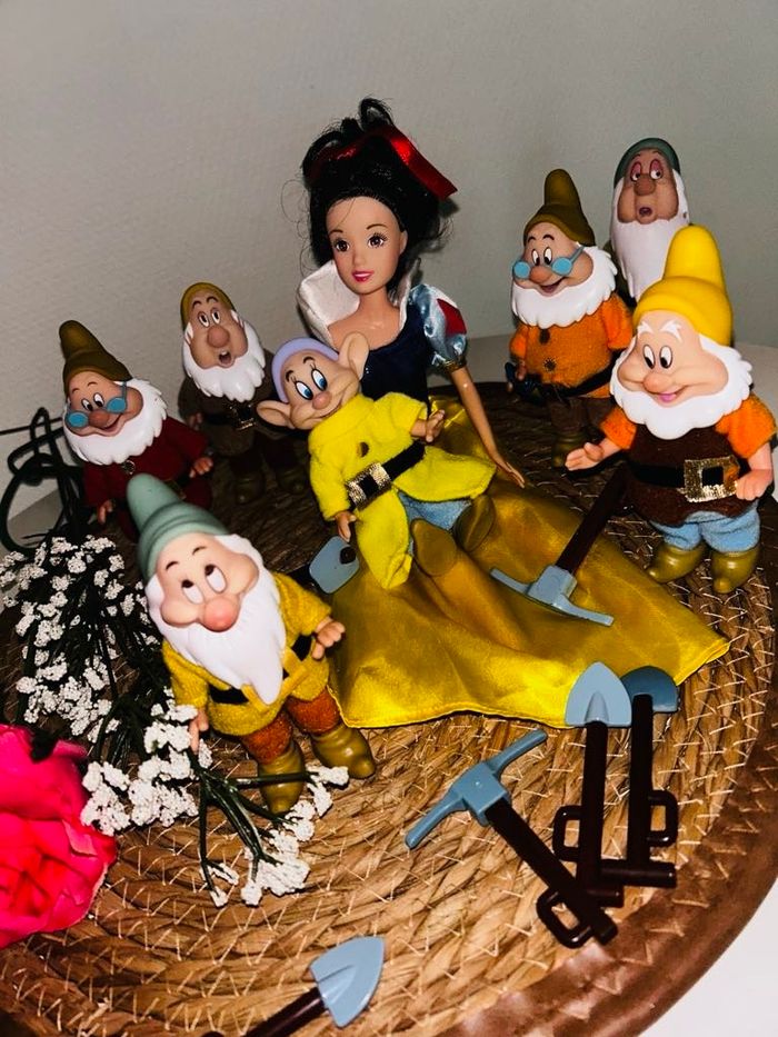 Lot poupee Disney blanche neige et les sept nains avec pioche
