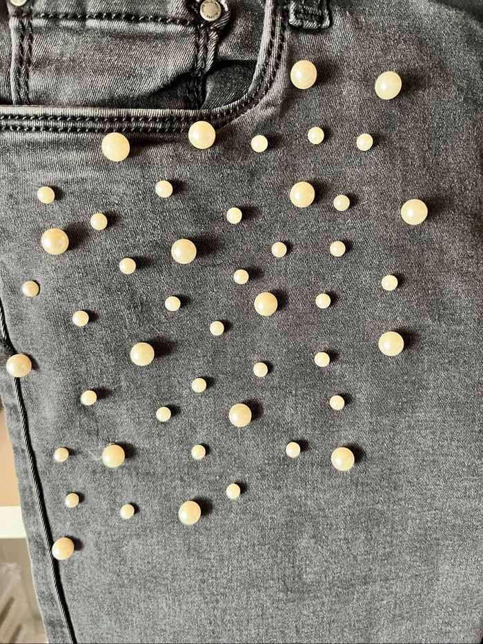 Jean noir délavé avec perles blanches regular woman T.S TBE 👖 - photo numéro 5