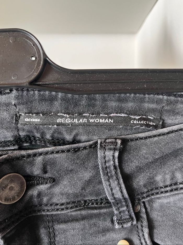 Jean noir délavé avec perles blanches regular woman T.S TBE 👖 - photo numéro 4