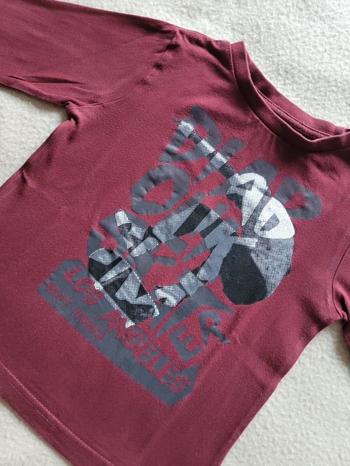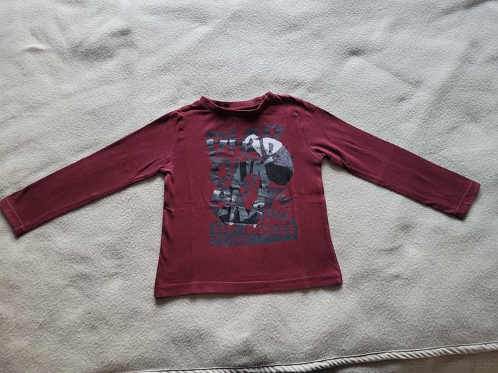 T-shirt manches longues 4 ans kiabi En très bon état Rouge bordeaux à motifs