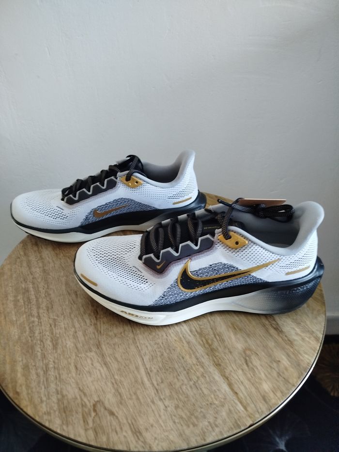 Je vends cette paire de baskets Nike. - Type de produit : Baskets - Univers : femme / homme - Marque : Nike - Modèle : Air zoom Pegasus 41 - Pointure : 39 - Couleur : noir blanc - Etat : Neuf - Boîte sans couvercle N'hésitez pas à me contacter pour plus d'informations ou de photos.