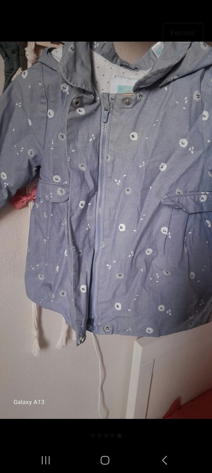 Manteau demi saison coupe vent et imperméable, capuche amovible, en très bon état
