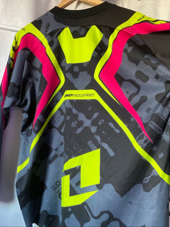 T-shirt Carbon Noir gris rose fuchsia jaune fluo taille L 100% polyester Pas de mesure pour la carrure Aisselle à aisselle 60,5 cm Longueur devant 70,5 cm, dos 79 cm