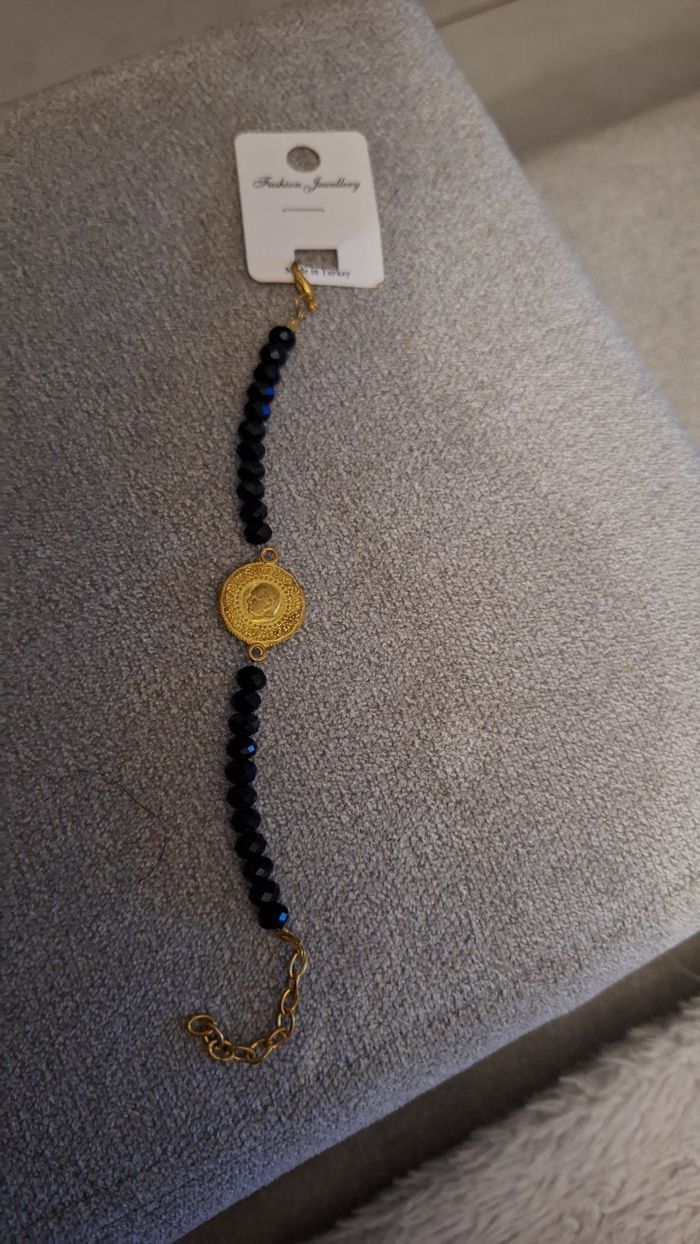 Bracelet pierre bleu marine et pièce premier président turc - photo numéro 1