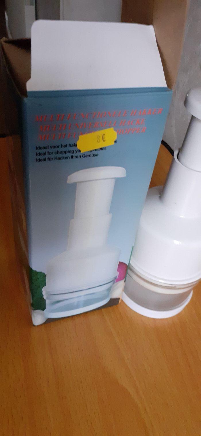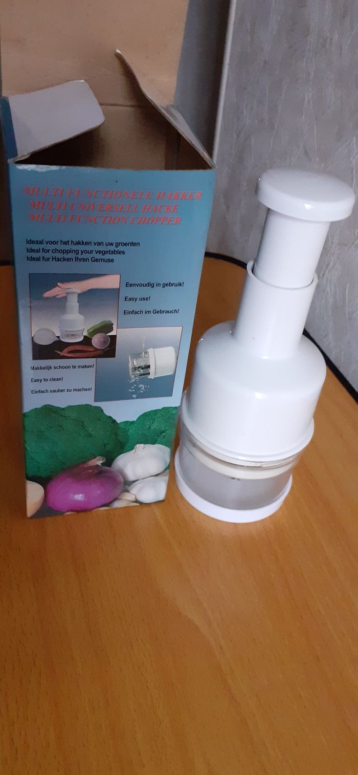 Vends un hâchoir à légumes manuel pour oignons, ail et autres légumes dans son emballage, servi 1 fois. Dimensions : 23 cm X 9 cm.