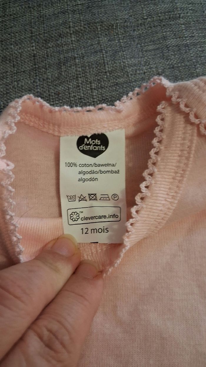 3 tee-shirts 12 mois Mots d'enfants. Très peu portés (le rose uni jamais).