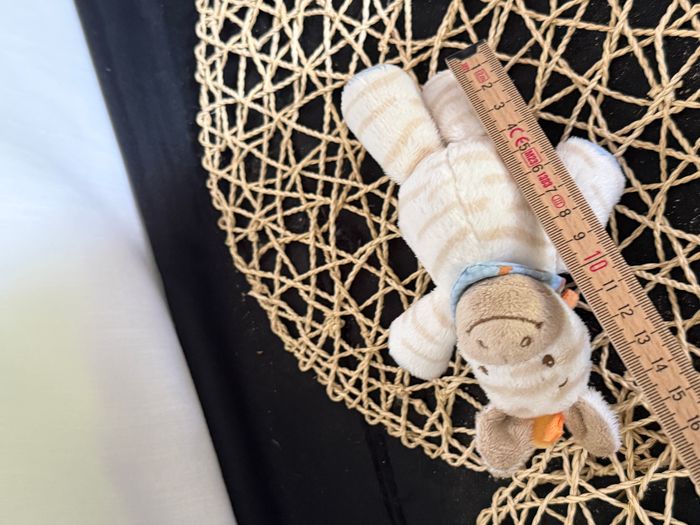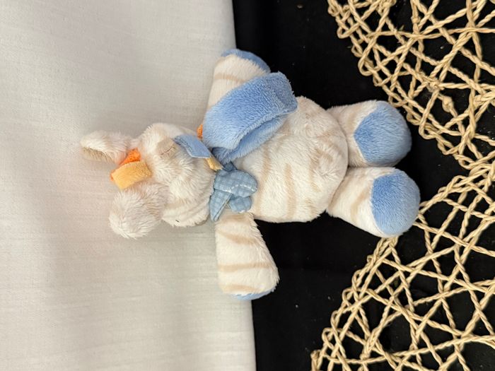 Peluche Arthur zèbre NATTOU Arthur et Louis bleu beige grelot 18 cm - photo numéro 3