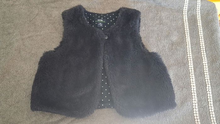 Veste sans manche bleu marine 9 mois Kiabi. Matière peluches. Fermeture par 1 seul bouton.