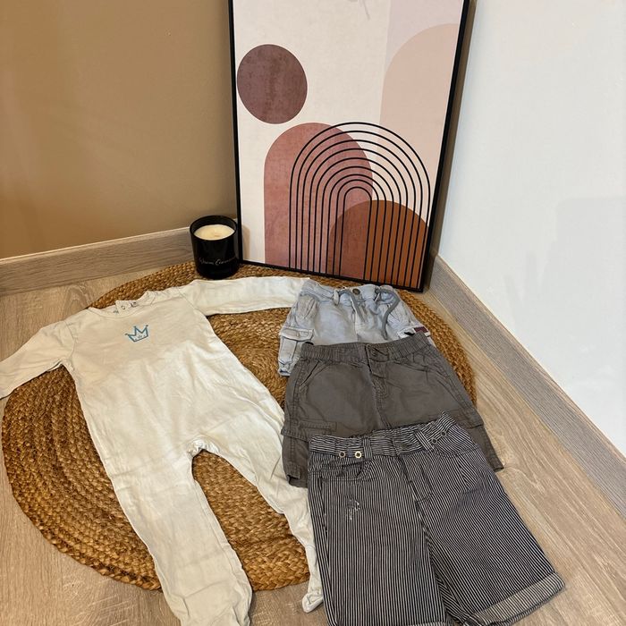 Lot de vêtements garçon – Taille 24 mois/2ans Un joli lot pratique et prêt à porter pour habiller votre petit garçon ! Le lot comprend : 1 coupe vent 1 chemise 1 pyjama 3 shorts 🩵 En bon état / lavés et triés avec soin 💨 Prêt à expédier rapidement