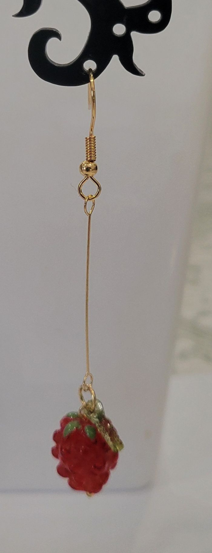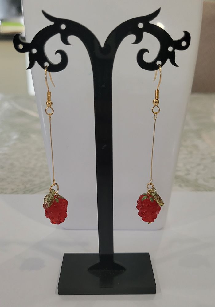 BOUCLES D'OREILLES LONGUES TIGES FRAMBOISES ! NEUF ! - photo numéro 4