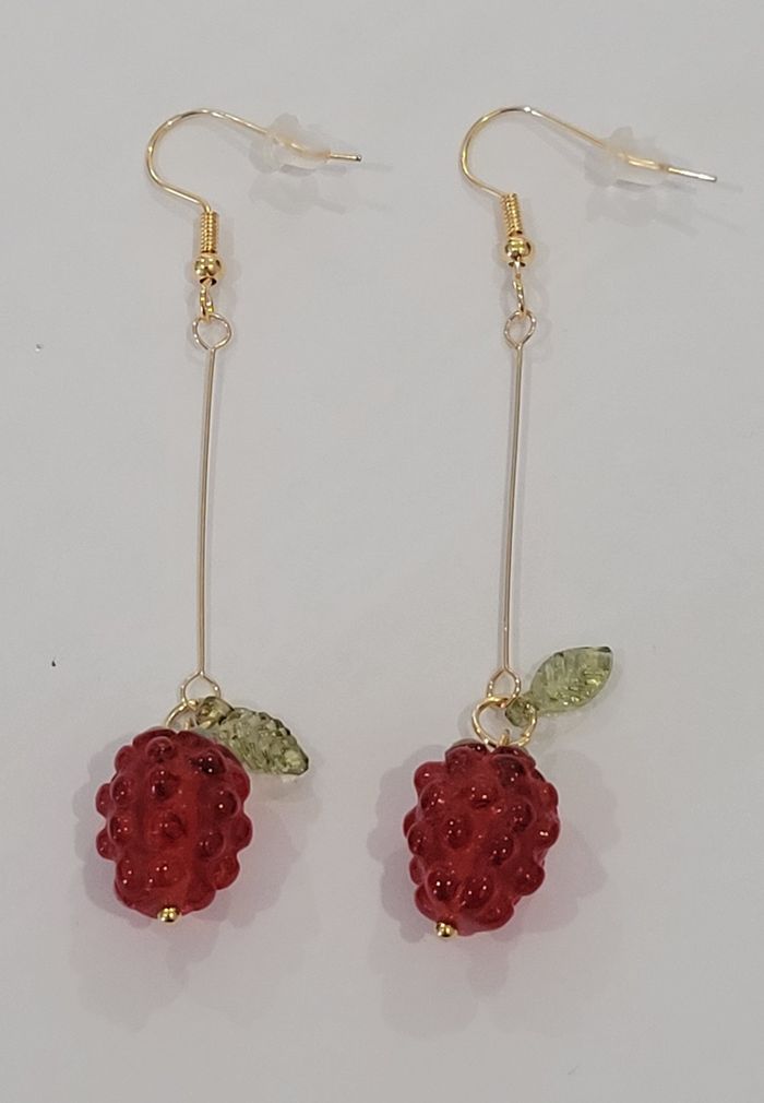 BOUCLES D'OREILLES LONGUES TIGES FRAMBOISES ! NEUF ! - photo numéro 1