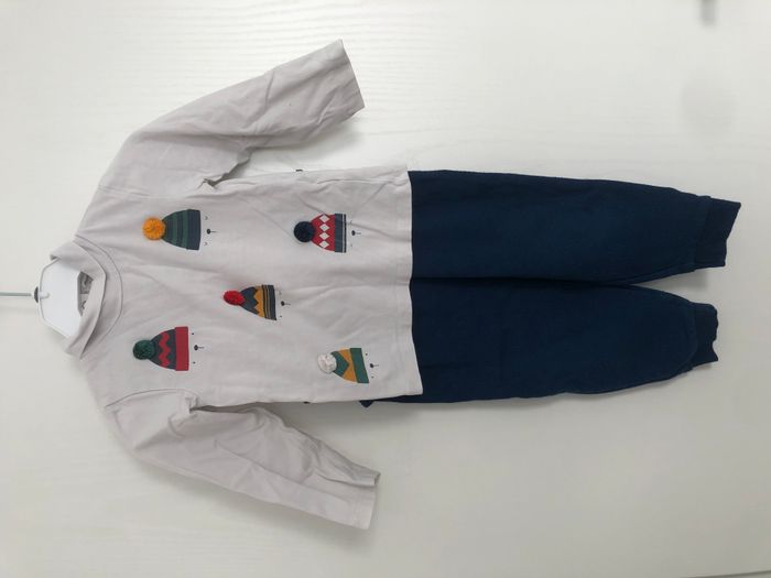 Ensemble garçon, 2 pièces, composé d'un haut col roulé et manches longues et d'un pantalon élastiqué à la taille. Motif bonnets d'hiver Marque Kiabi (haut) et Ergee (bas) Taille 18 mois, 86 cm