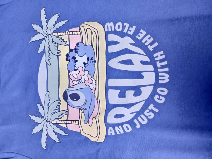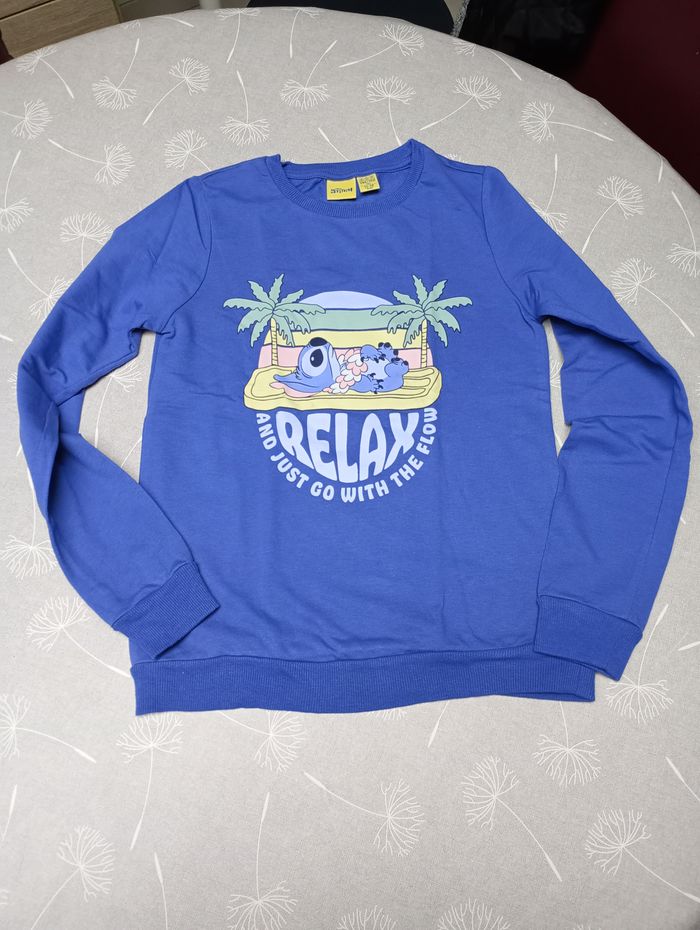 Pull avec dessin de Stitch. Attention, il est violet pas bleu comme sur les photos. Taille : 146/152 - 11/12 ans. Marque : Primark. Très bon état.