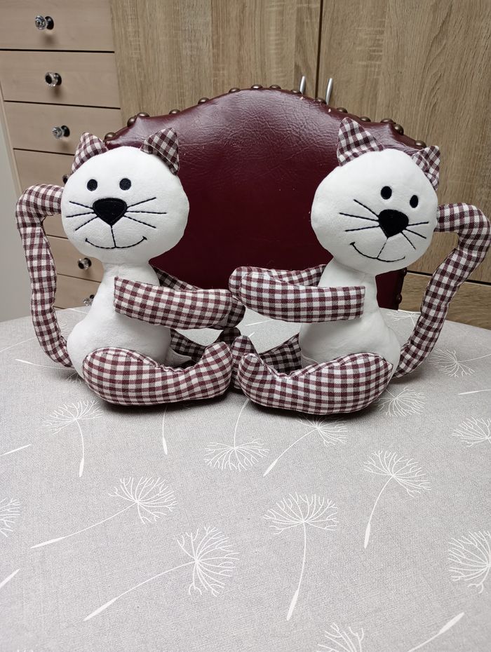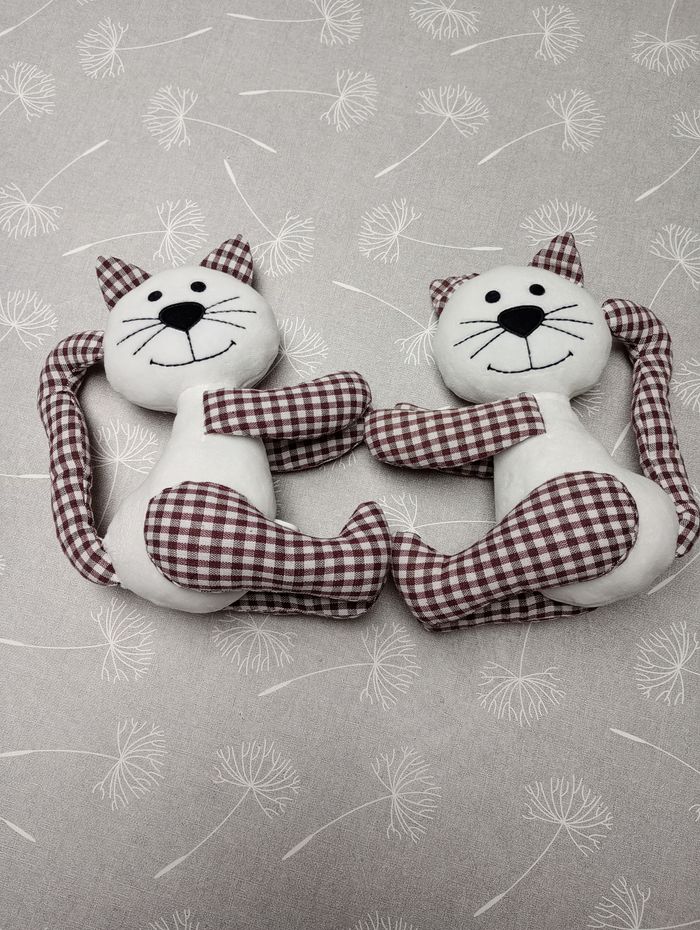 Lot de 2 embrases pour rideaux en forme de chats. Ils ont été passés à la machine. Etat impeccable. Peut également servir de décoration. Hauteur : 23 cm.