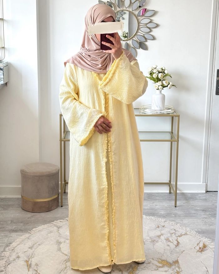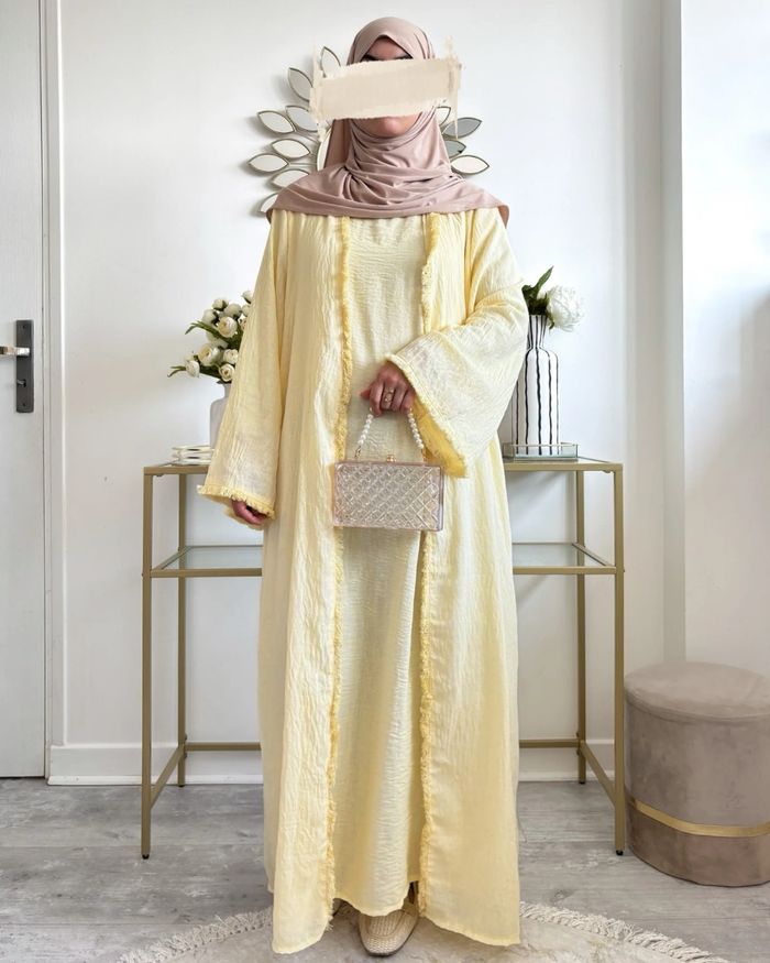 Hello 🤗 Je vends cet ensemble kimono et robe débardeur couleur jaune beurre. Neuf / jamais porté Taille unique Remise en main propre possible en Essonne