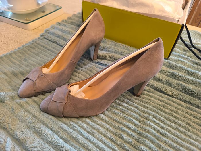 Escarpins taupe grisée cuir velours pointure 41 Eram Hauteur de talon 9 cm Dessus et tige synthétique, semelle intérieur cuir, semelle extérieur et élastomère NEUF