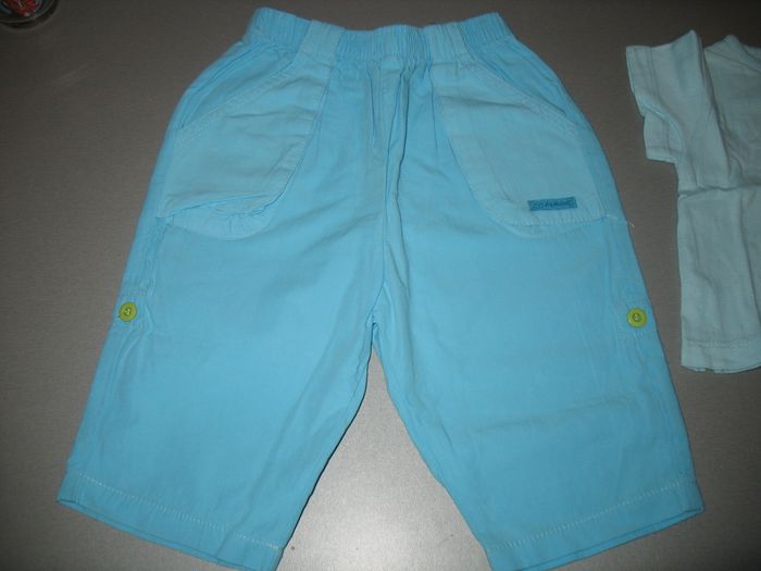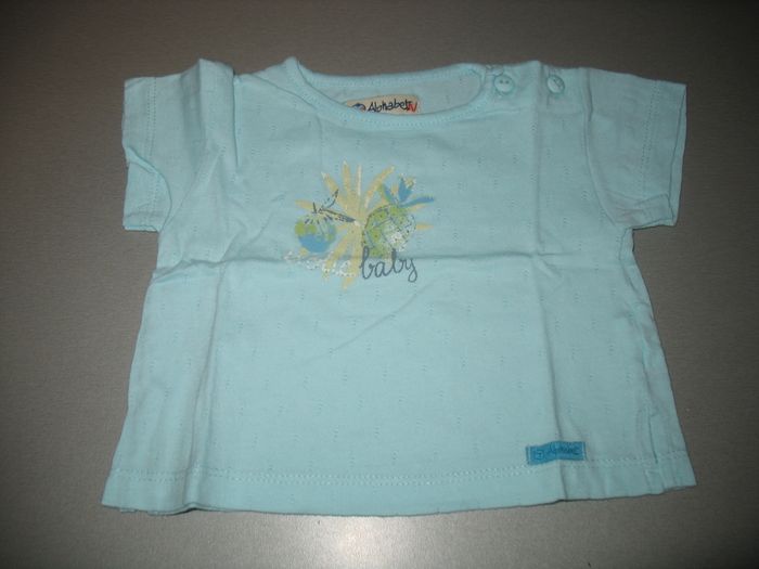 #6Mois_Bébé_Fille_Nathg2210 ENSEMBLE 2 PCS BÉBÉ FILLE : PANTALON + TEE SHIRT MC "ALPHABET" - 6 MOIS - n°07 Pantalon bleu - Taille élastique - Possibilité de le mettre en pantacourt par des attaches - 2 poches - Matière : 100% coton. Tee shirt à manches courtes bleu ciel - Motifs ajouré - Col col - 2 boutons épaule - Motif fruits devant - Matière : 100% coton. Je possède deux ensembles identiques dans la même taille. Article d’occasion en très bon état - Sans trou - Ni tache - Lavé et repassé pour la vente. Possibilité d'envoyer d'autres photos sur simple demande. Maison non-fumeur - Sans animaux. Réduction lot activée. Allez voir mes autres ventes, je vide les placards. Beaucoup de vêtements de marque et beaucoup de jouets. Remise en mains propres ou possibilité d'envoi au tarif en vigueur à votre charge. Retour Refusé. Pour tout renseignement, n'hésitez pas à me contacter, je répondrai volontiers à vos questions. Réponse Assurée. Pour Consulter mes autres annonces tapez Nathg2210.