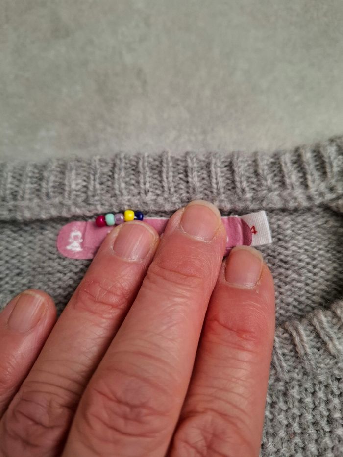 Très bon état avec un petit lien en perles sur l'étiquette pour reconnaître facilement ses vêtements cf photo. N'hésitez pas à jeter un œil dans mon dressing. Etiquette thermocollante toujours presente